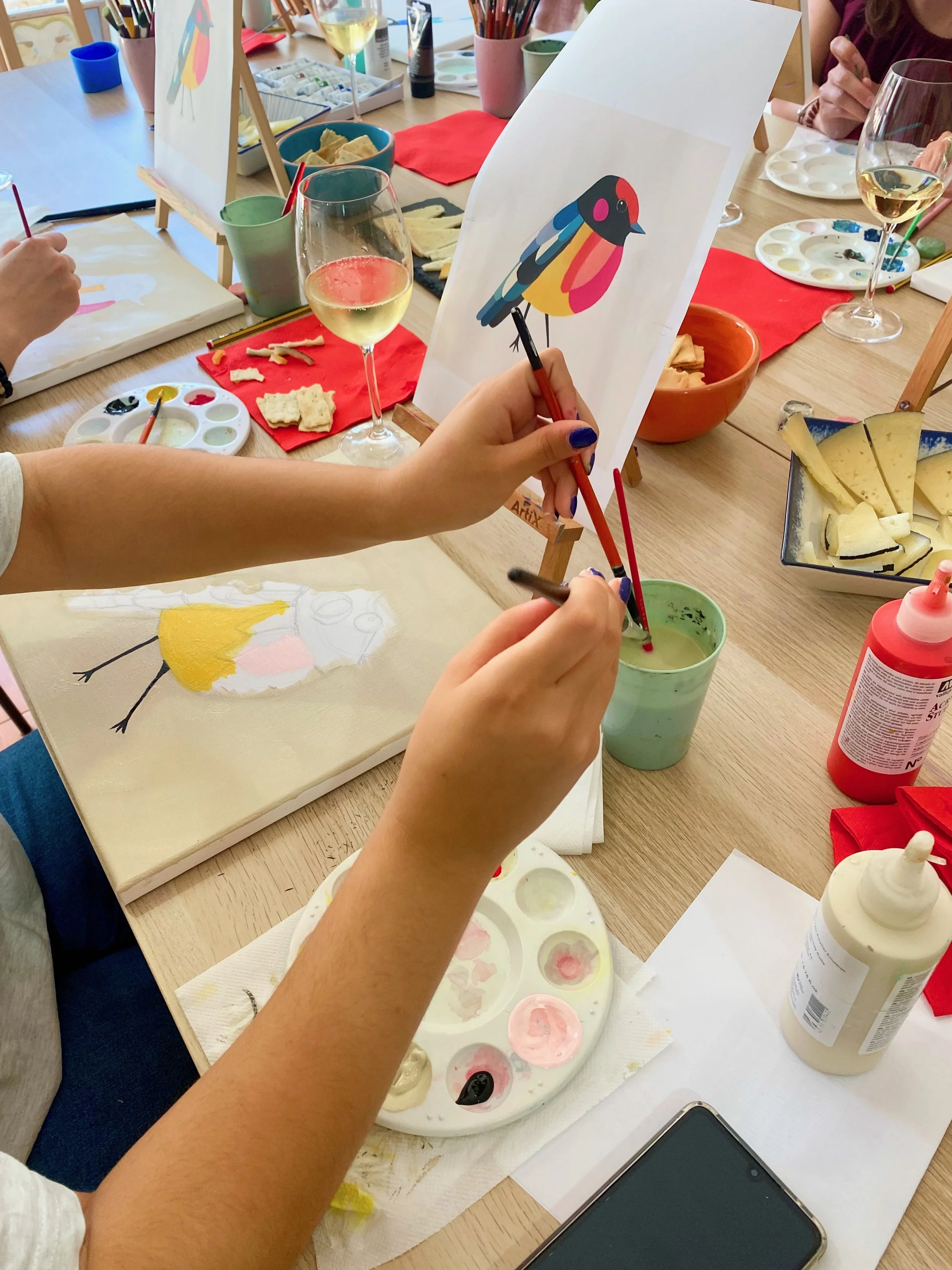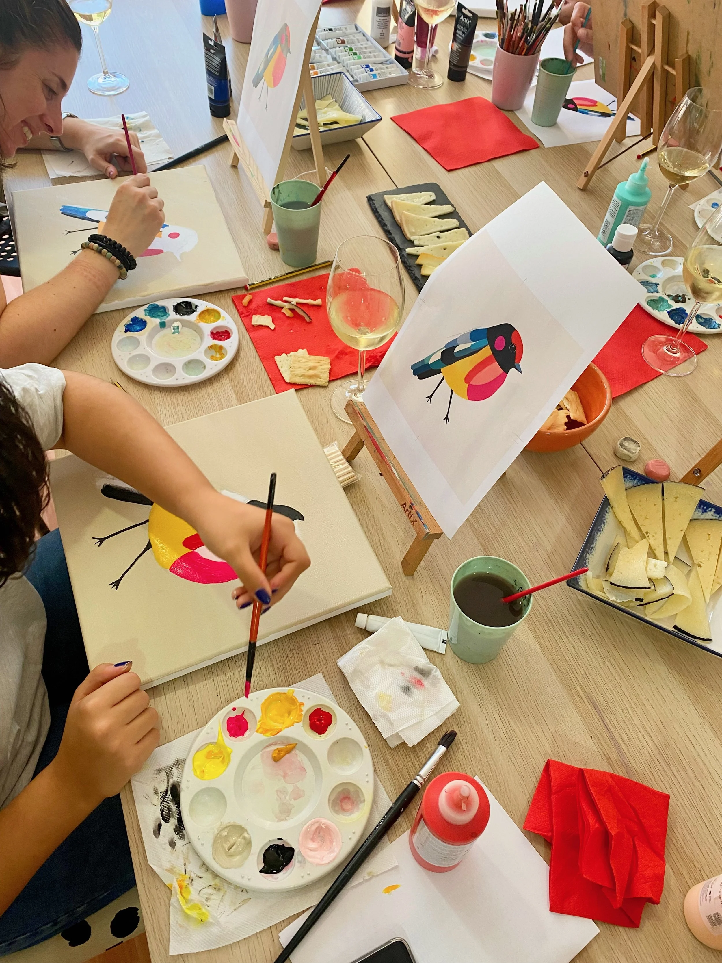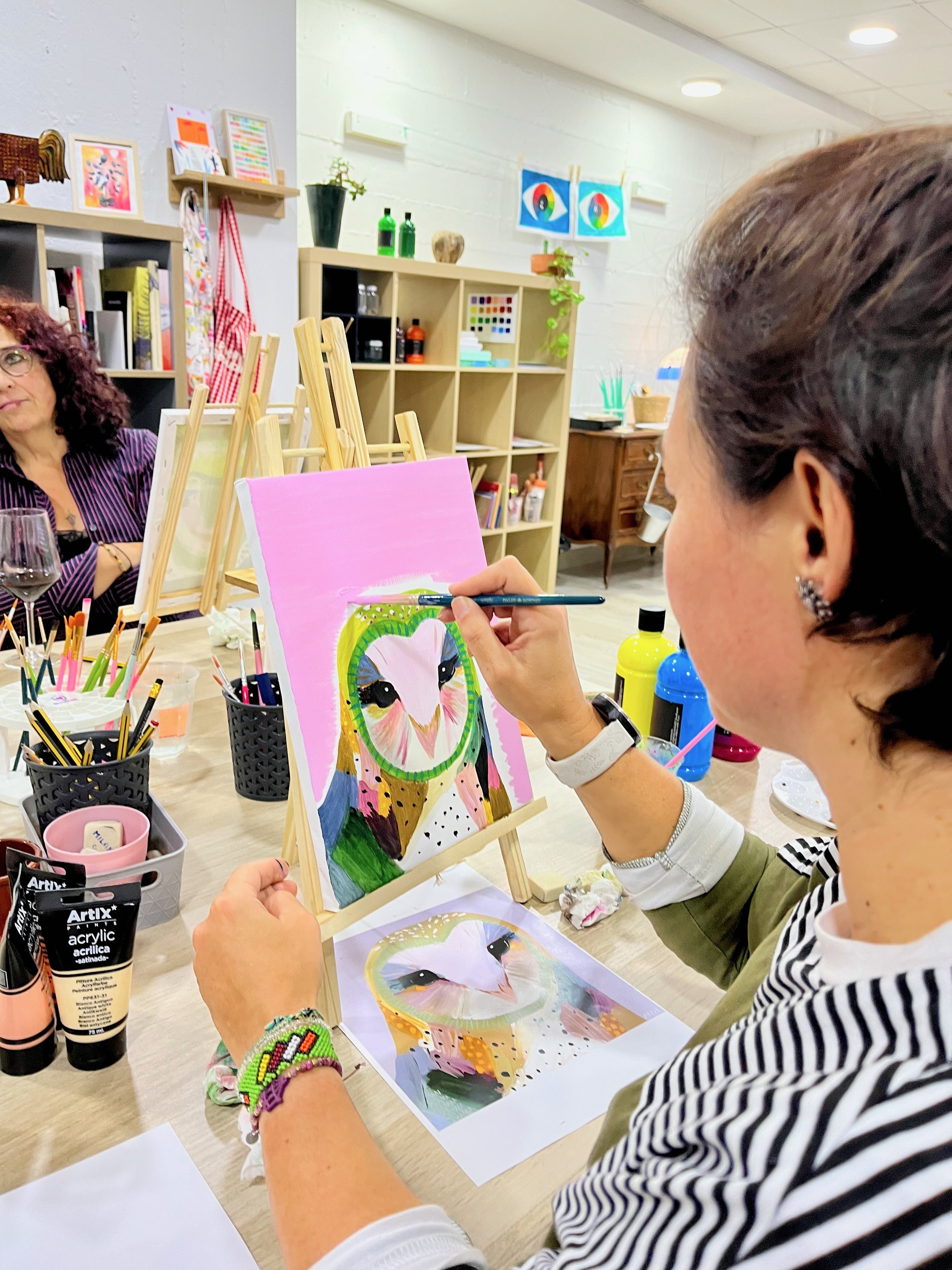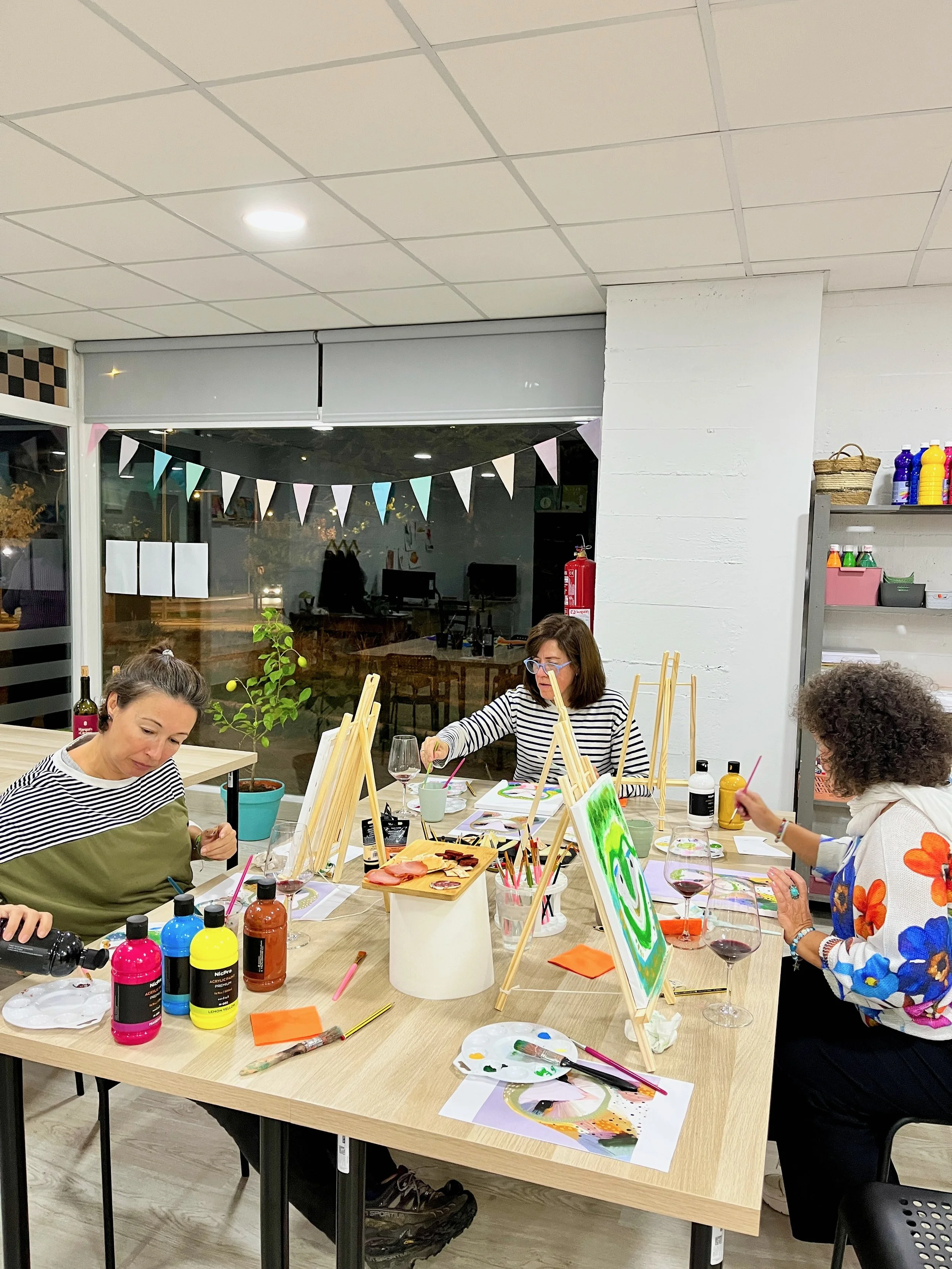 El 28 de noviembre te invitamos a una experiencia diferente: una copa de vino, buena compañía y un cuadro pintado por ti. Pasaremos una tarde relajada y creativa, aprendiendo técnicas sencillas mientras disfrutamos del proceso sin prisa y con risas.