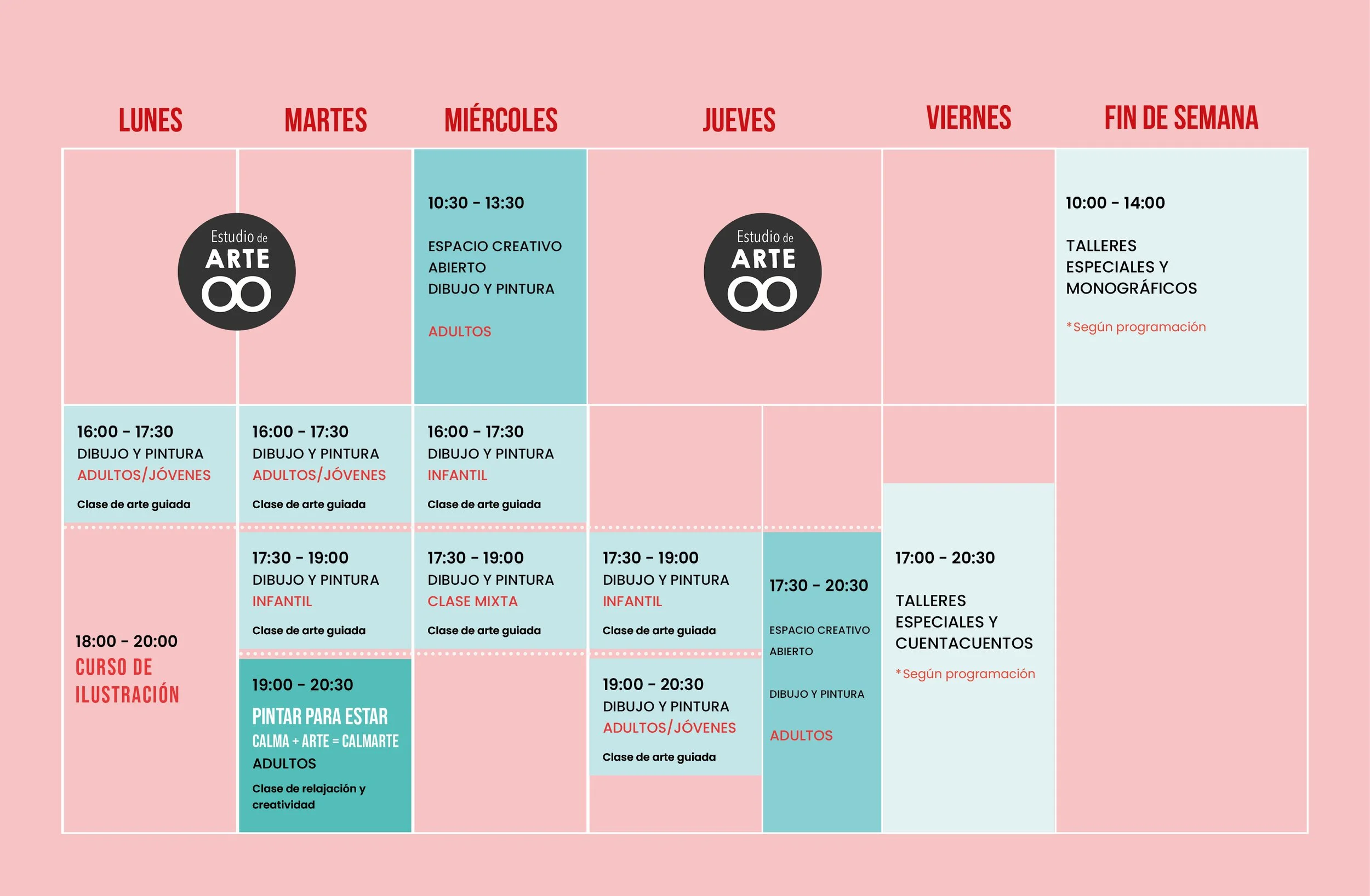 Los horarios del Estudio de arte Infinito podrán variar en función de la demanda.